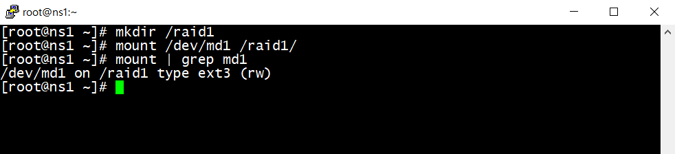 마지막으로 raid로 구성된 하드디스크에 접근할 수 있도록 마운트작업을 수행하면 된다. 마운트를 위해 /raid1 이라는 디렉토리를 만들고 해당 디렉토리에 /dev/md1을 마운트 시켜주면 된다. 마운트 정보를 유지하려면 앞서 정리한것 처럼 /etc/fstab에 등록하면 된다.