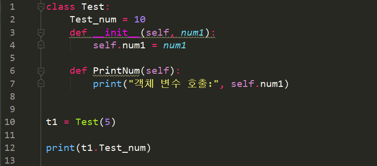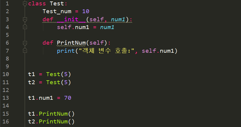 이는 객체에 객체 변수 Test_num을 생성하여 100이란 값을 가지도록 한것이기 때문이다.