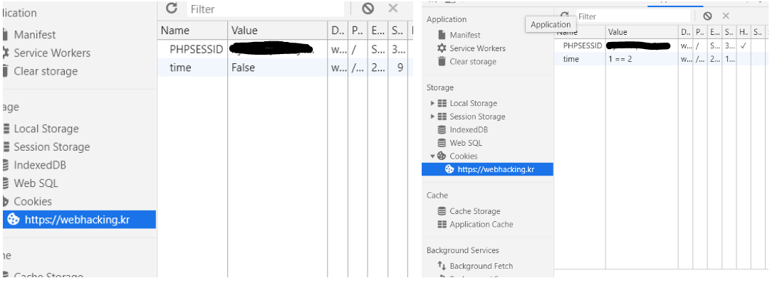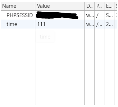 해당 페이지의 쿠키값을 확인해본 결과 time이라는 쿠키 변수가 존재하고 있다.