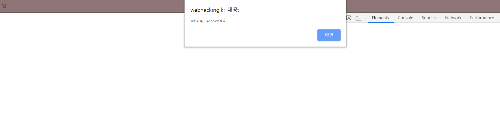 아무런 값을 입력해 보니 wrong password라는 알림 창이 뜨게 된다. 그럼 이제 이 password를 찾아야 할 것 같다.