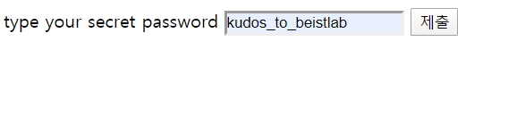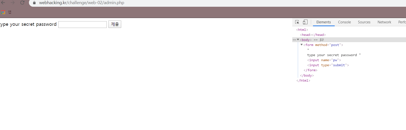 성공 적으로 admin.php에 접근이 되었다. admin.php에는 type your secret password라는 문구와 함께 패스워드를 제출할 수 있게 되어있다.