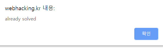 임의로 여러 True값을 넣어보려고 하는 중 첫 번째 1' or '1'='1 을 시도하자마자 해당 문제가 풀리는 것을 확인할 수 있다. 이미 한번 풀린 다음에 다시 풀기 때문에 위와 같은 팜업창이 뜬것이다.