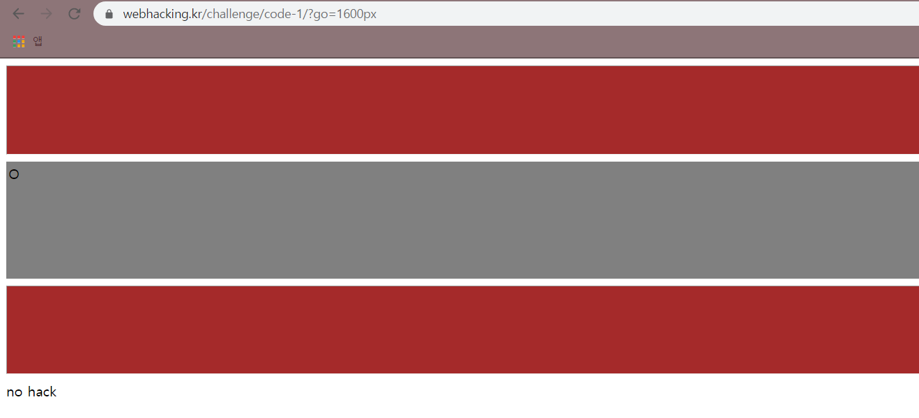 그래서 소스에 나와있는 것처럼 url에 직접 1600px의 값이 들어가도록 시도해 보았더니 no hack이라는 글자가 출력되며 풀리지 않았다.