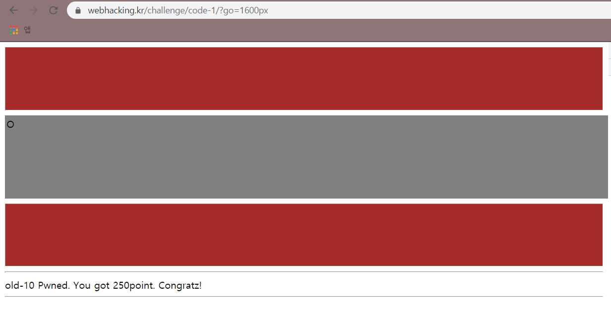 그래서 소스에 나와있는 것처럼 url에 직접 1600px의 값이 들어가도록 시도해 보았더니 no hack이라는 글자가 출력되며 풀리지 않았다.